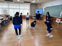ふり返りでは、お互いのがんばりを讃え合う声も聞かれ、8の字跳びを通して良い交流ができました。