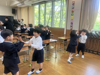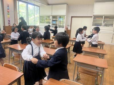 ワンツースリー・・・とペアで笑顔いっぱいに活動していました。 ふりかえりでは「〇〇さんと手を揺らしたのが楽しかった」「 一緒にできて嬉しかった」との声が出ていました。