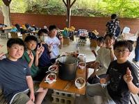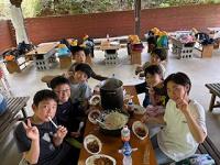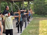 「みんなで仲良く協力し、礼儀正しく、安全な宿泊体験学習にしよう」をめあてに、アーチェリー、いかだ体験、肝試し、野外炊事、ディスクゴルフにチャレンジしました。
