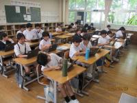 1年生は、ペアの3年生にクロームブックの使い方を教えてもらって、ログインをしたり、カメラ機能を使って、写真を撮ったりしました。3年生は優しくて頼りになるお兄さん、お姉さんたちで、1年生の子どもたちも安心してスムーズにクロームブックを使うことができました。3年生、ありがとう!