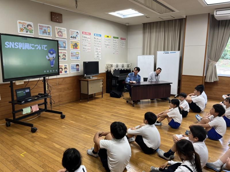 本日、5・6年生は津幡警察署と石川県警本部の方をお招きして「SNSやLINEの安全な使い方」について学習しました。