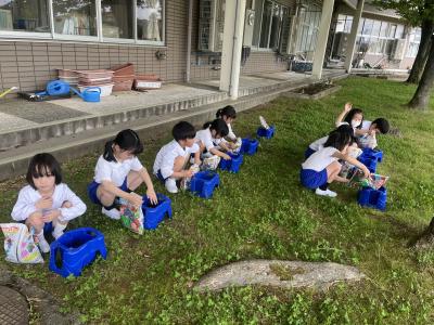 「米つぶくらいだった」「ざらざらしていた」 など見た感じや触った感じをそれぞれが表現し、「 どんな色の花が咲くかな」「ちゃんとおせわするよ」 と今後の生長に思いをはせていました。