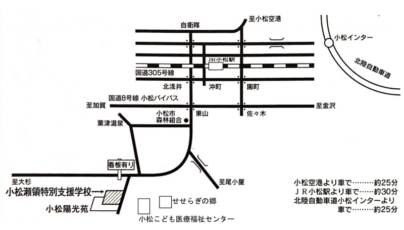 加賀産業道路・東山インター、粟津インターから、車で約10分