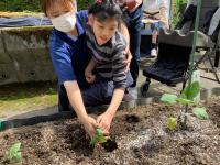 4月中旬に植えたジャガイモの種芋から、たくさんの芽が出ました!