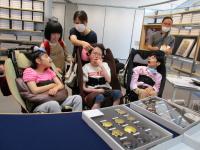 まず、公共施設内でのマナーを確認し、ワークシートを受け取り、工芸作品を探しました。