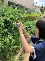 葉っぱの中に隠れるスナップエンドウを見つけて、収穫しました。