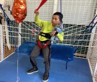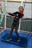 毎週スパイダーシステムを利用し、立位や座位などに取り組んでいます。