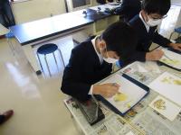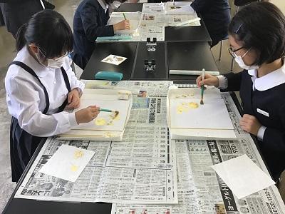 11月2日(水)箔押し体験がありました。初めての体験で難しいところもありましたが無事に完成させることができました。石川県が誇る金箔の魅力を感じることができたのではないでしょうか。今度はぜひ自分で金沢を訪れて金箔について考えてみてもいいですね。
