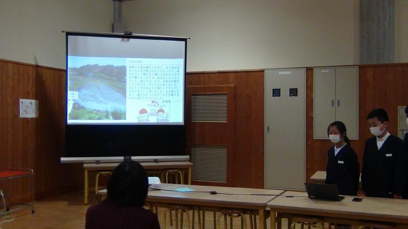 4年生の社会科で「自然災害から身を守る」の学習をしています。家での対策,学校の対策や町役場の対策と共通点を探しながら学習することができました。また役場に取材にいく中で一人一人が防災の意識を持たないとどんなに準備をしても意味がないという言葉を頂き,学習前に比べて児童の中にも防災意識が少し芽生えてきたのではないかなと思います。また非常食もいただきとてもいい学習ができました。これからにいかしていきたいです。