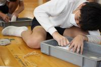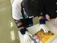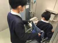 4年生は総合の学習で福祉体験をしました。志雄小学校で高齢者疑似体験をし,アステラスでは車いす体験をしました。高齢者疑似体験では,手首や足首に重りを付けたり手には軍手をつけたり特殊なゴーグルを付けたりして,高齢者の方の感じ方を実際に体験してみました。いつもなら簡単にできる階段の上り下りや本を袋から物を出すことなども,高齢者の方にとっては難しいことなのだと実感していました。また,車いす体験では,実際に車いすに乗ってみると小さな段差もこわく感じることなど,体が不自由な人の立場にたって考えていました。
