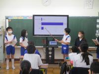 11月7日(月)租税教室がありました。1学期に学習した税のことについて詳しくお話を聞くことができました。税金がある町とない町を比較しながらわかりやすく解説していただきました。税金を自分の身近なものに感じる貴重な時間になりました。