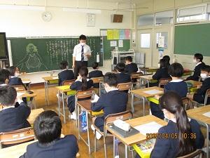 2月9日(木)に薬物乱用防止教室が行われました。学校近くの瑠璃光薬局から薬剤師さんをお招きして保健の学習の内容をさらに詳しく教えていただきました。自分とは関係のない話と思うのではなく、しっかりとした知識をもち、もしそういう機会にふれたならばしっかりと断ることが大切だと教えて頂きました。これからの生活に生かしてほしいですね。