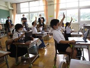 志雄小で初の試み,リモートでの全校集会が行われました。各教室で校長先生のお話,生徒指導のお話がリモート配信され,学年ごとに聞きました。リモートであってもいつも通りお手本となる反応・聞き方をする6年生,反応が相手に伝わるようにハンドジェスチャーやリアクションをする5年生といったように,リモートでできることをそれぞれがしていました。また,別教室に委員長や関係の委員会が集まって,そこから配信する児童集会もありました。各教室からの配信の余地もあり,今後新たな集会の仕方が広がりそうです。