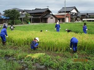 泥だらけになりながらも,今年の稲刈り体験がんばってきました。今年は刈るだけでなく,稲の束を縛ったり運んだりとたくさんの仕事をしてきました。お世話してくださった池田さん,貴重な体験を本当にありがとうございました。