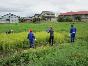 5月に植えた苗が順調に生長し,いよいよ収穫の時となりました。ほとんどの子が初めての稲刈り体験ということでしたが,上手に鎌を使い,手早く稲を刈り取ることができました。