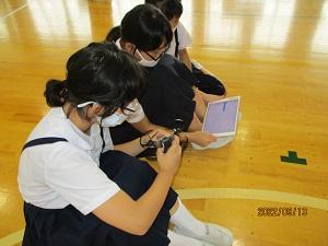 高学年は,トイドローンをタブレットを使って,コースに合わせて操縦したり写真を撮影したりしていました。