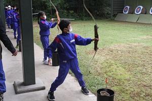 11日(火),国立能登青少年交流の家へ行ってきました。普段する機会のないアーチェリーや,自然の中に入っていくディスクゴルフなどを全員で楽しんできました。