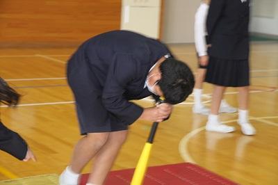 1か月間A判定をもらうために必死に練習する姿がありました。長休みや昼休みを使ってできない技ができるようになったときは達成感があったと思います。本番でA判定をもらえたうれしさやもらえなかった悔しさをこれからの生活に生かしてほしいです。
