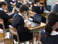 昨年度より配付された一人一台パソコンを活用し授業を行っております。4年生は現在のところ毎日の授業の半分くらいはPCを使った授業を行っています。また休み時間にはアプリを使ってローマ字のタイピング練習を行っています。使う頻度が多くなるにつれて子ども達の操作も上手になってきました。これから目まぐるしく変化していく社会についていくためには必要なことですね。しかし書いたり、計算したりと昔から変わらずに大切にしなければいけないこともあります。バランスを考えて進めていきたいと考えています。