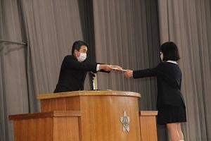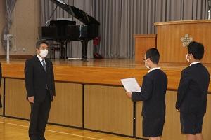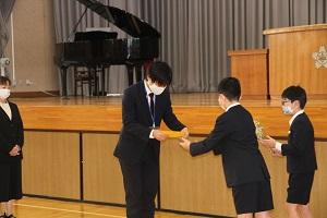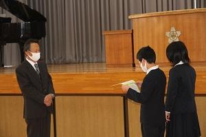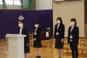 卒業生との別れを惜しむかの如く,惜別の雨の降りしきる中,令和2年度卒業証書授与式が執り行われました。特別な1年間の締めくくりとして,特別な卒業式にするため,これまでの練習をがんばってきました。卒業する立場として,立派な顔の卒業生を送り出すことができたと思います。ご卒業おめでとうございます。