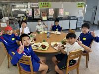 5年生は、煮干しからだしを取り味噌汁を作りました。煮だす前と煮だした後の煮干しを食べ比べ、煮干しからだしが出たことを実感しました。また、栄養教諭が用意してくれた昆布、鰹節、煮干し、顆粒だしの飲み比べを行い、それぞれの風味の違いを感じました。顆粒だしは塩分が入っているのでおいしく感じますが、それ以外のだしについても、そのうまみを感じることができました。その中でも、自分たちが作った煮干しのだしの味噌汁がとてもおいしかったようです。ぜひ、家でも作ってほしいです。