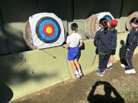10月25日(金)国立能登青少年交流の家へ自然体験学習に行ってきました。今回は樋川小学校の5年生と合同でアーチェリーとディスクゴルフを体験してきました。グループ構成は志雄・樋川合同で活動しました。前回学校で合同授業をしたときよりも仲が深まりました。自然に名前を呼んだり、楽しそうに活動したりと統合に向けて着々と準備が整ってきました。今後も活動を継続していき,4月にはいいスタートがきれるようにしていきたいです。