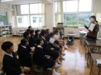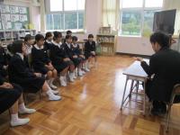 11月11日(月)ビジネスアカデミーがありました。今年も敷波地区のHope hair's の中田さんに来ていただき理容師、美容師の歴史や仕事についてお話していただきました。はさみの持ち方や片手でゴムを扱う方法など日頃からしていることも体験させていただきました。一人前になるのに10年かかったというお話や職人が使うハサミの値段を聞いて子どもたちはとてもびっくりしていました。手に職をつけることや自分がどんな目標を設定していくかが大切で夢に向かって努力してほしいとお話していただきました。生まれ育った町に戻って仕事をしてくれる人が増えるといいなと思います。