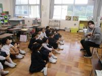 10月28日(月)の朝学習時、絵本の読み聞かせを行いました。今回は各学級担任で学年をシャッフルし、日頃とは違うクラスで読み聞かせを行いました。子供たちは、いつもとは違う先生にドキドキしながらも、お話の世界に入り込んでいました。おしりの話、動物がでてくる話、宇宙の話…など各学年、楽しそうに反応しながら聞いていました。本への興味が広がると嬉しいです。