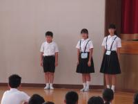 児童集会では後期委員長のデビュー戦。大きな声でそれぞれの目標を伝えることができました。司会もバッチリでした。