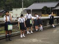 16日(水)流れる水の働きを学習するために、大海川見学に行きました。津幡の河合谷地区で上流の様子、かほくの大海地区で中流の様子を観察しました。5年生は、それぞれの場所での川の流れ方や水量、石の大きさや形、河原の様子などをしっかり観察し、気づいたことをいっぱいメモしていました。天気が心配されましたが、雨に当たることなく無事見学ができました。