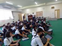 10月8日(火)生け花体験を行いました。いつも学校の花を生けていただいている池田さんに来ていただき、生け花の歴史やお花の気持ちなどを教えてもらいました。その後、自分でお花を選んで生け花を楽しみました。女子はもちろんのこと意外にも男子達もやる気満々で、それぞれの個性があふれた作品が出来上がりました。感想では「お花のよさを知れた」「思っていたより簡単にできそうなので家でもやってみたい」などの感想が上がりました。素敵な経験ができました。