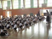 7月12日に、町交通安全協会と母の会の方々が、志雄小学校の全校児童に