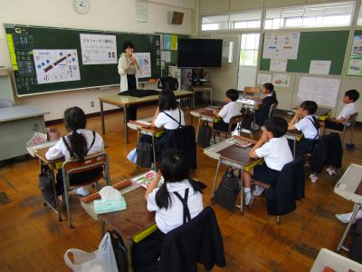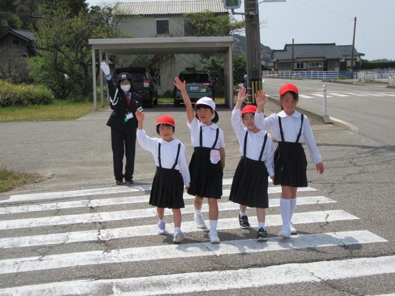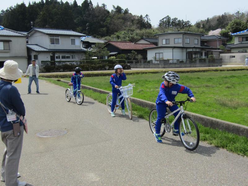 4月15日(月)交通安全教室がありました。低学年は、横断歩道の渡り方、中学年は自転車の乗り方、高学年はビデオを見て交通安全についての確認を行いました。志雄駐在所の高松さんからは、低学年に対し、道路を歩くときは、「きちんと見る」「きちんと止まる」「きちんと待つ」ことが大事という話をしていただきました。全校で交通安全に気をつけて元気に生活していきたいです。
