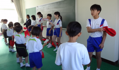 5月18日の運動会に向けて、赤組・白組に分かれての