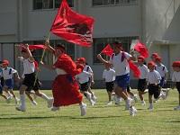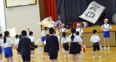 赤白どちらの組も、団長を筆頭に、6年生が大きな声で団員をリードする