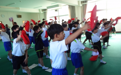 運動会応援練習 赤組白組どちらも盛り上がっています!