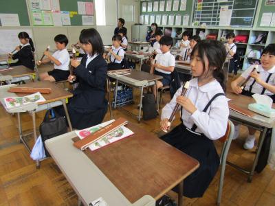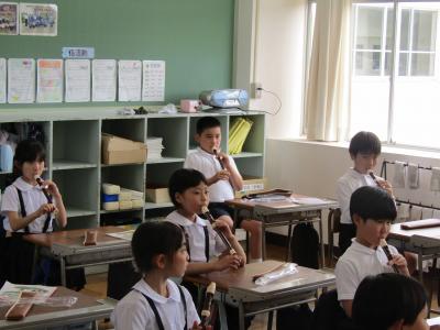 初めてリコーダーを手に取った子どもたちは、先生から教わったタンギングや吹き出す息の量などを意識して、楽しそうに演奏していました。