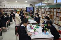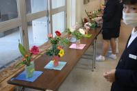 11月22日(水)生け花体験を行いました。いつも学校の花を生けていただいている池田さんに来ていただき、生け花の歴史やお花の気持ちなどを教えてもらいました。その後、自分でお花を選んで生け花を楽しみました。女子はもちろんのこと意外にも男子達もやる気満々で、それぞれの個性があふれた作品が出来上がりました。感想では「お花にもっと興味をもった」「思っていたより簡単にできそうなので家でもやってみたい」「おばあちゃんを手伝いたい」などの感想が上がりました。素敵な経験ができました。
