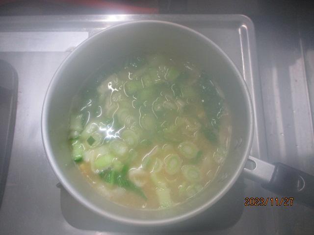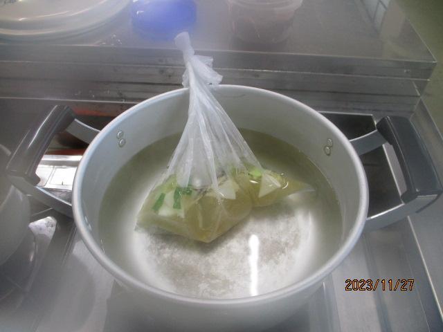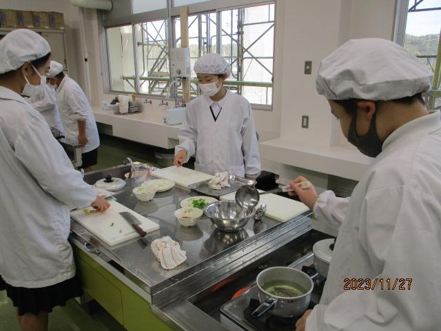 11月27日(月)家庭科の調理実習を行いました。煮干しでだしを取り、大根に油揚げ、ねぎ、そして本町特産のチンゲン菜入りの味噌汁を作りました。だしをとった後の煮干しとだしをとる前の煮干しを食べ比べたり、顆粒タイプのだしと飲み比べをしたり、存分に「だし」を味わいました。また、栄養教諭から、災害時でもできる味噌汁の作り方を習いました。自分たちで作った味噌汁はとてもおいしかったようです。また、家庭でもチャレンジしてほしいです。