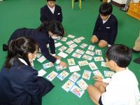 身近な障がい者マーク・ユニバーサルデザインの話や寸劇、そして人権かるたと様々な活動を楽しみながら、人権について学ぶことができました。4年生は、今、総合的学習で福祉について学んでいるところです。重なる部分も多く、より深く充実した学びとなりました。