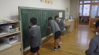 1~6年生までそれぞれの教室で書初め大会を行いました。お手本をもとに、一人一人が真剣な表情で集中して取り組む姿が見られました。