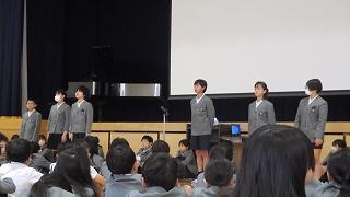 任命式では、委員会の委員長と学級代表が力強く抱負を全校に伝えました。