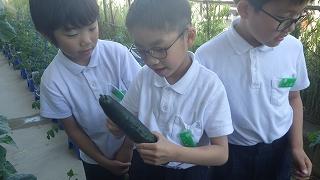 2年生で育てているきゅうりを収穫しました。