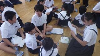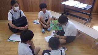 1年生を前にして、初めは、少し緊張した様子でしたが、時間が経つにつれ、ブックトーク以外の場面でも1年生に優しく声をかける姿があり、下級生との関わり方を学んでいました。