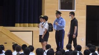生徒指導の先生方からの安全のお話では、3年生が演技を交えて「廊下歩行のよさ」を分かりやすく伝えてくれました。