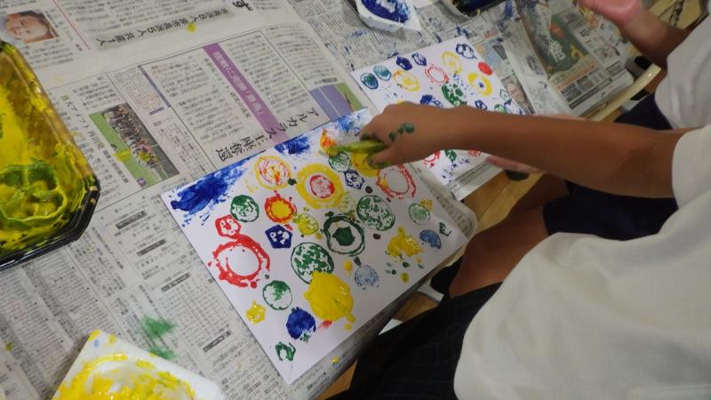 今回は、夏野菜を使ったスタンプで絵を作り上げました。