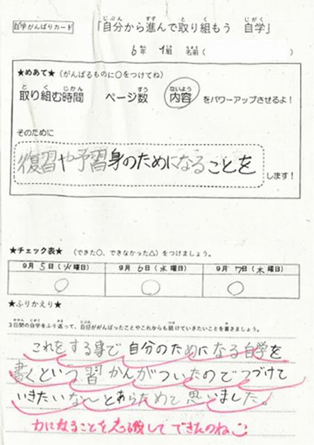 ナンバーワン自学ノートを参考に、自分の自学もレベルアップしていけるといいですね。期待しています!