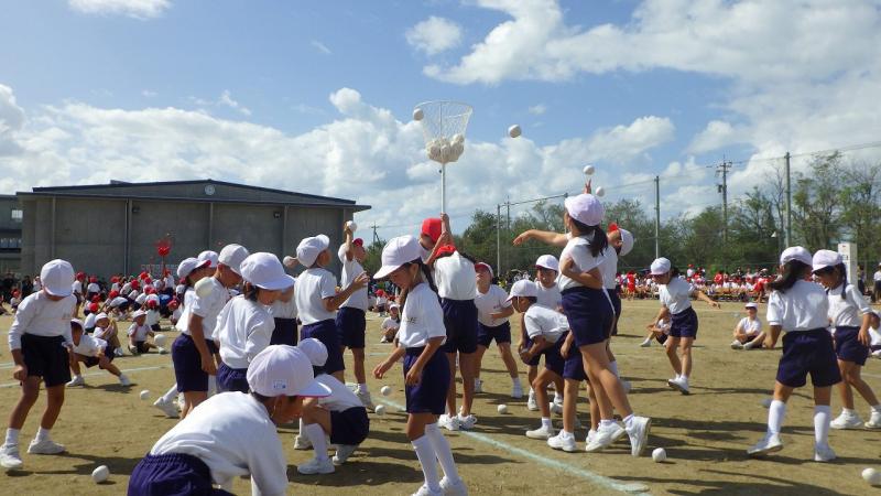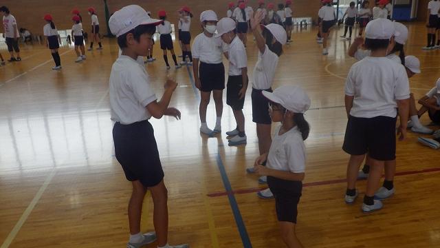 友達同士で見合ったり、先生にアドバイスをもらったりしながら、どの学年も一生懸命練習に取り組んでいます。5,6年生が1,2年生に教えている姿も印象的でした。
