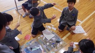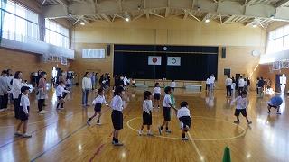 昼休み、ふれあいグループがありました。6年生が1~5年生にそれぞれの応援の仕方を教えてあげていました。
