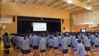 今月の生活目標は「身なりや環境を整えよう」です。服装や身の回りの整理整頓を意識して残り少ない2学期をがんばっていきます。